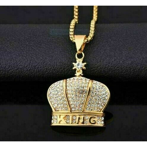 สร้อยคอจี้มงกุฎเพชรชุบทองแบบยูนิเซ็กซ์ สไตล์ฮิปฮอป เครื่องประดับปรับแต่งได้