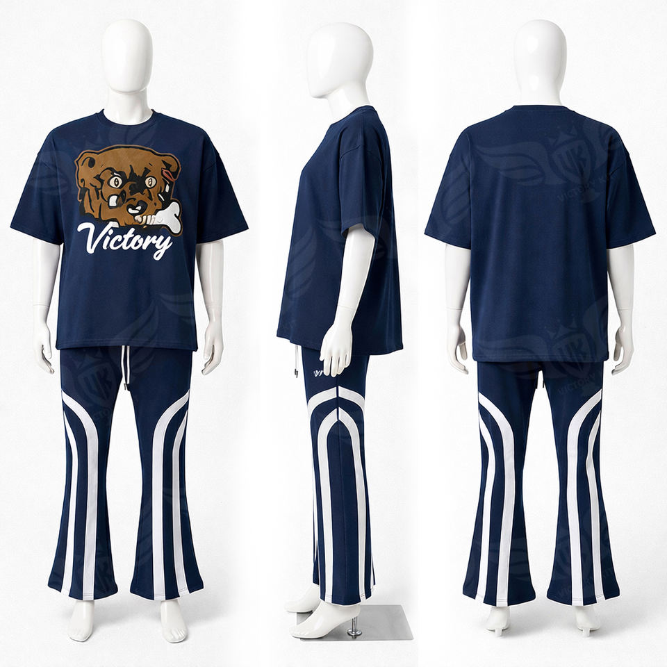 ชุดเสื้อยืดกราฟิกแบบยูนิเซ็กซ์และกางเกงขาบานทรงโอเวอร์ไซส์ พร้อมกางเกงขายาวพิมพ์ลาย สไตล์สตรีทแวร์ ชุดเซ็ต 2 ชิ้น