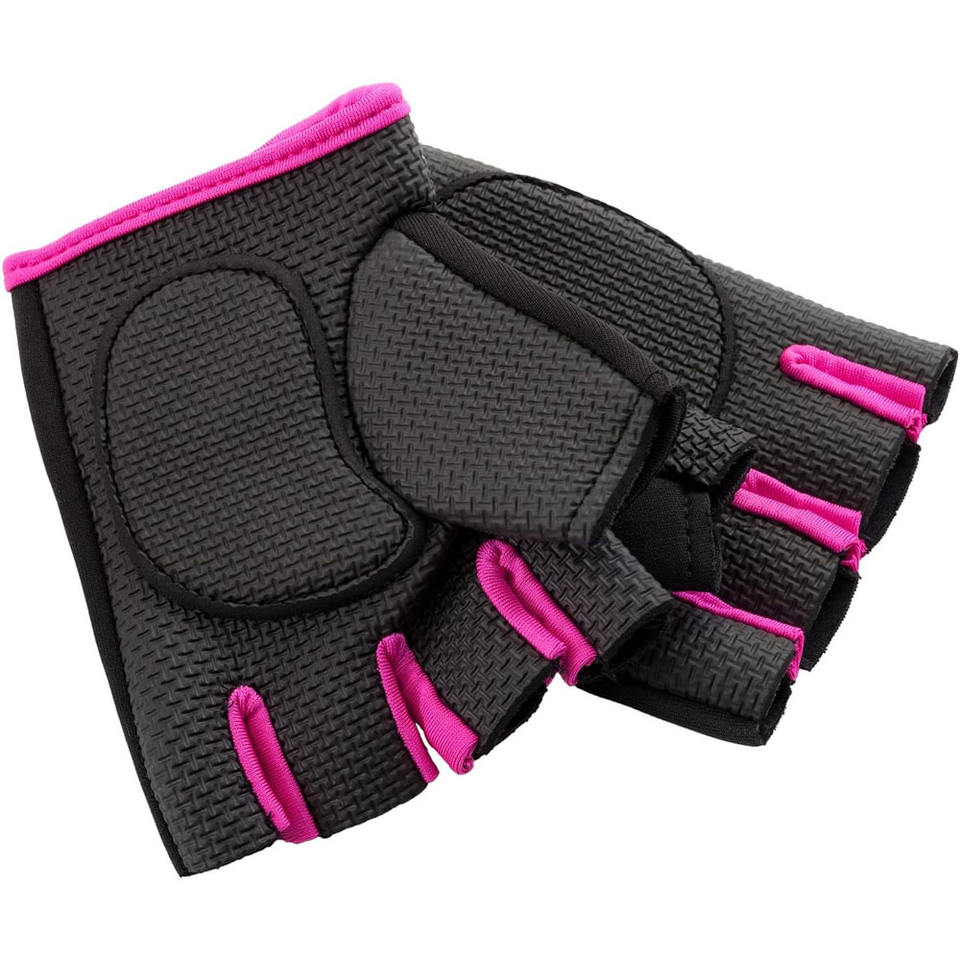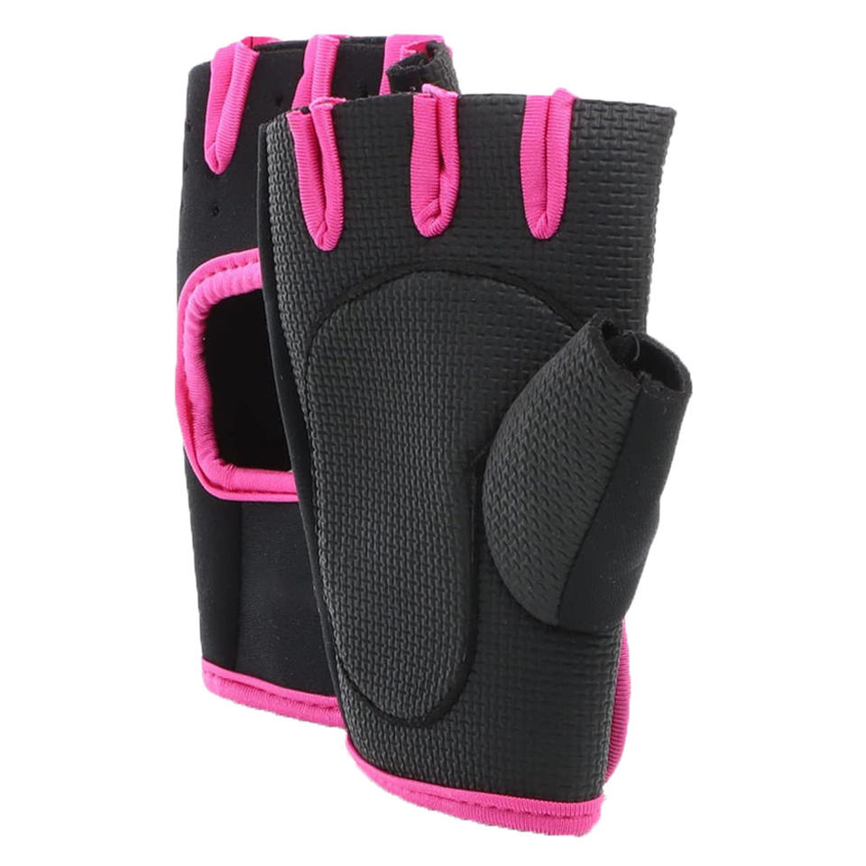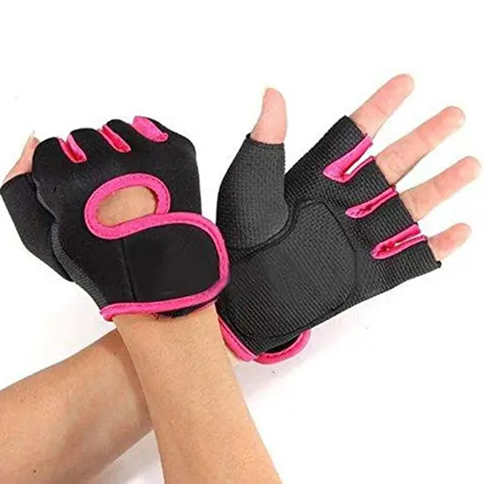 ถุงมือหนังยกน้ำหนักแบบยูนิเซ็กส์สำหรับผู้หญิงถุงมือออกกำลังกายปิดครึ่งนิ้วสีชมพูสีดำ