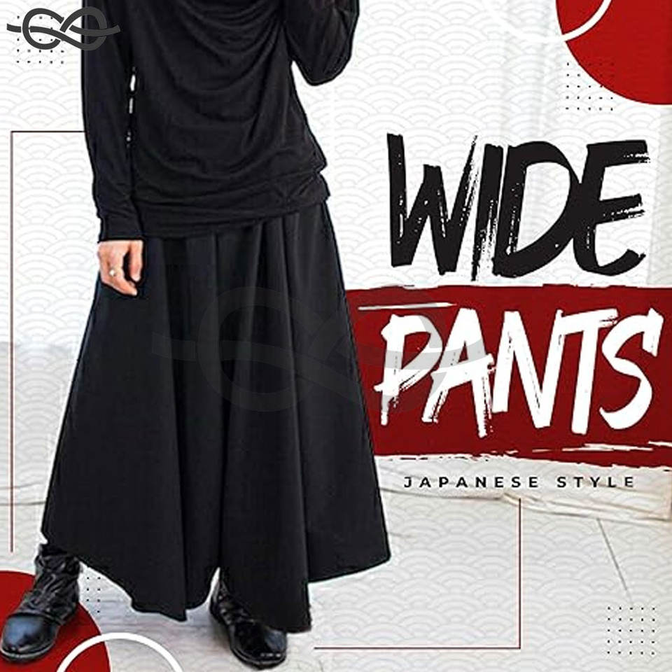 กระโปรงกางเกงฮากามาสำหรับทุกเพศสไตล์ญี่ปุ่นสำหรับผู้ชายและผู้หญิงสีดำขากว้างเสื้อผ้าแนวสตรีทความยาวแนวสตรีทแฟชั่นสไตล์ญี่ปุ่น