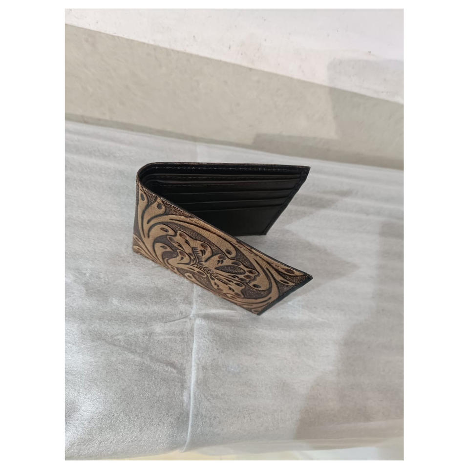 กระเป๋าสตางค์หนังนิ่มสีน้ำตาลใส่ได้ทั้งชายและหญิงลายดอกไม้โลโก้ออกแบบได้ตามต้องการสินค้าจากอินเดีย