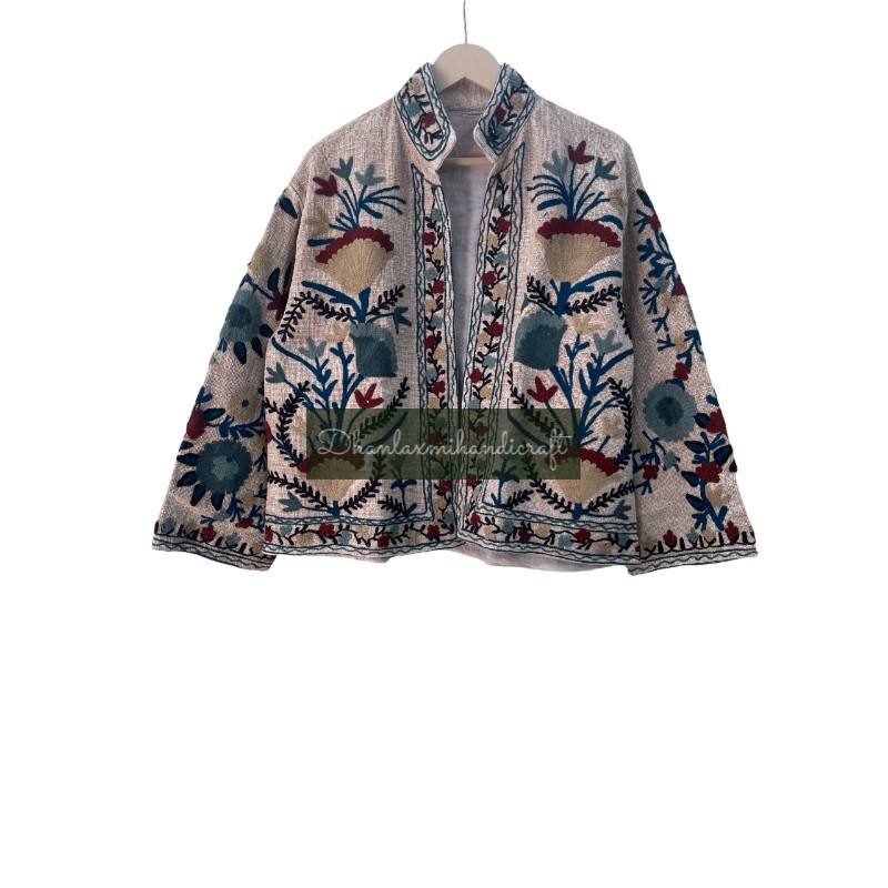Suzani TNT แจ็กเก็ตผ้าคอตตอนทำมือใส่ได้ทั้งชายและหญิงเสื้อคลุมกันหนาวปักด้วยมือสำหรับฤดูใบไม้ร่วง