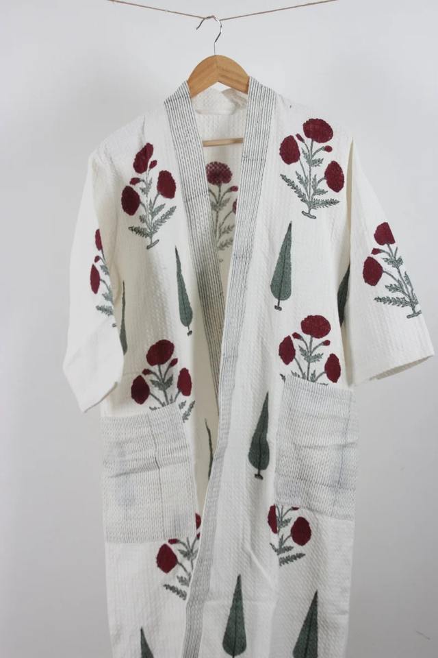 ชุดคลุมอาบน้ำวาฟเฟิลผ้าฝ้ายทำด้วยมือสำหรับทุกเพศชุดนอนผ้าลินินพิมพ์ลายดอกไม้ลายดอกไม้คริสต์มาสชุดแมกซี่พลัสไซส์ XL สำหรับสปา