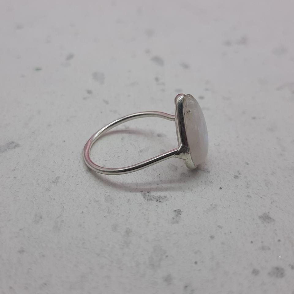 แหวนขอบดีไซน์แบบเรียบง่ายใช้ได้ทั้งชายและหญิงทำด้วยมือสีเงิน925น้ำหนักเบาลายลูกแพร์มูนสโตนสำหรับงานแต่งงาน