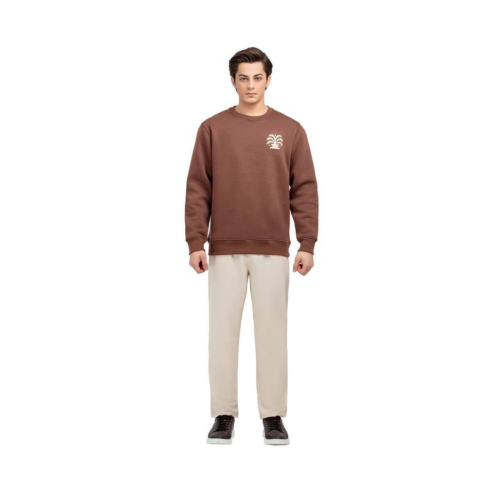 เสื้อสเวตเชิ้ตคอกลมผ้าฝ้ายหนานุ่มสำหรับผู้ชาย พิมพ์โลโก้ตามสั่ง ดีไซน์ด้านหน้าแบบมีซับใน