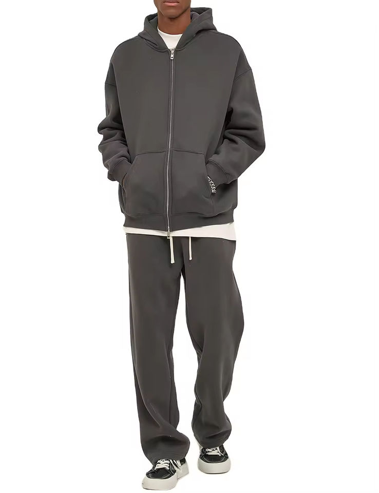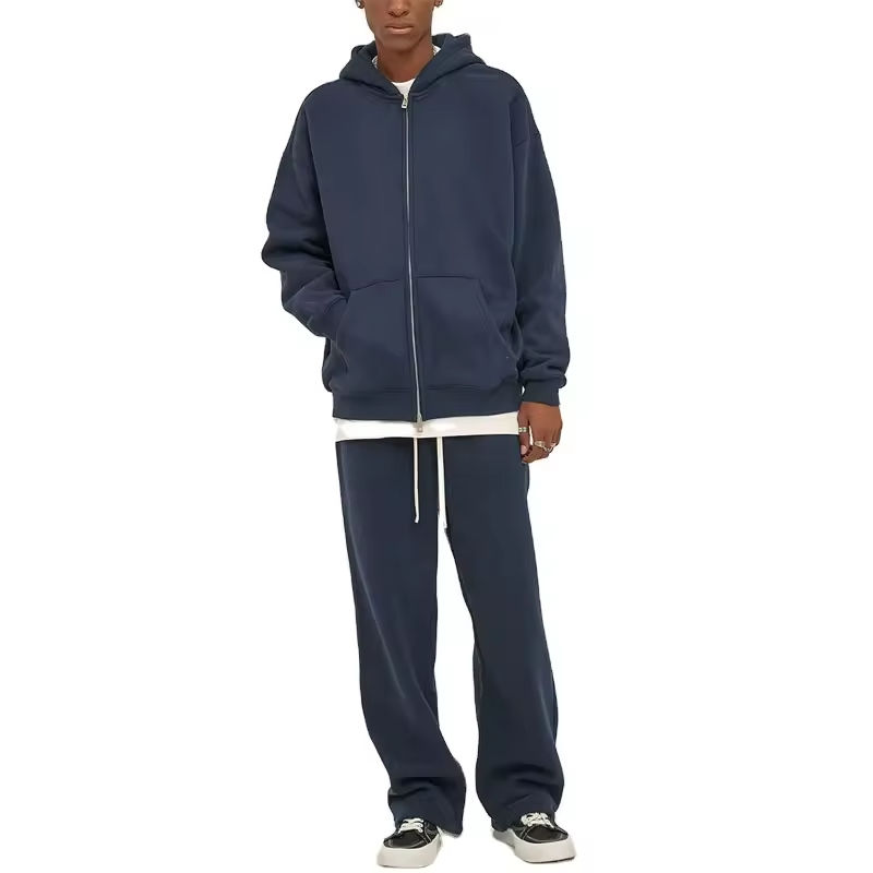 ชุดวอร์มผ้าฟลีซคอตตอนหนานุ่ม ไซส์ XXL คุณภาพสูง แบบ 2 ชิ้น สำหรับทุกเพศ พร้อมลายพิมพ์ OEM เสื้อฮู้ดซิปโอเวอร์ไซส์ กางเกงวอร์มขายาว สำหรับฤดูหนาว