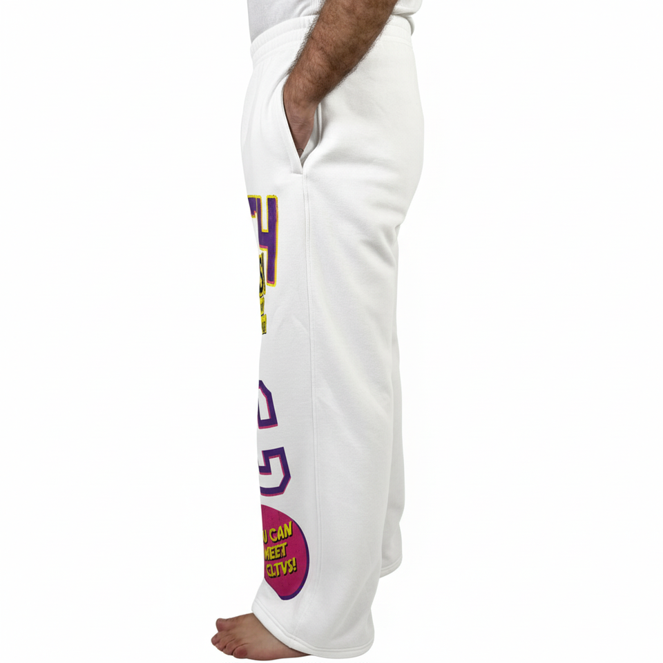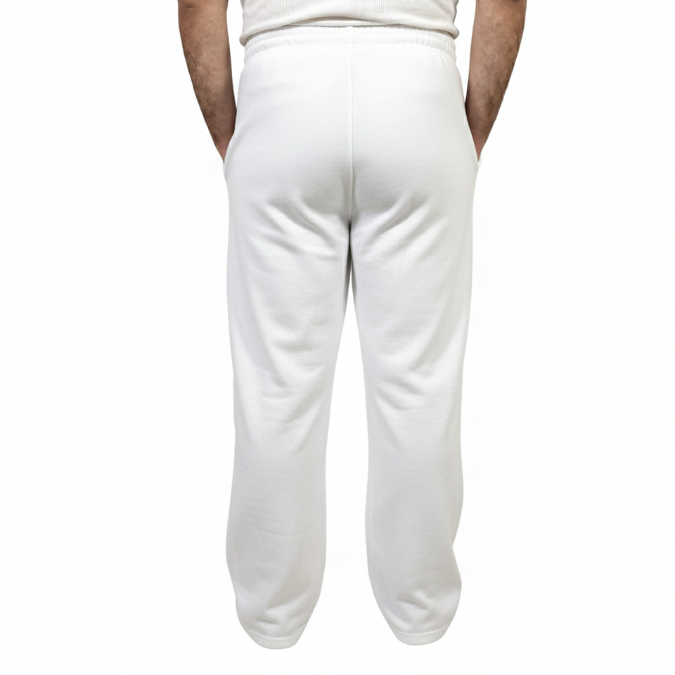 กางเกงวอร์มทรงแบ็กกี้ไซส์ใหญ่พิเศษสำหรับผู้ชายใส่ได้ทั้งชายและหญิงผ้าฝ้ายฟอกสีขากว้างสีพื้น