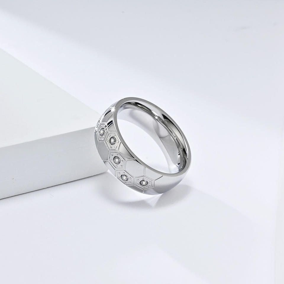แหวนไทเทเนียมทรงหกเหลี่ยมแบบยูนิเซ็กซ์ สีทอง ดำ เงิน ประดับเพชรทรงเรขาคณิต ของขวัญเครื่องประดับ