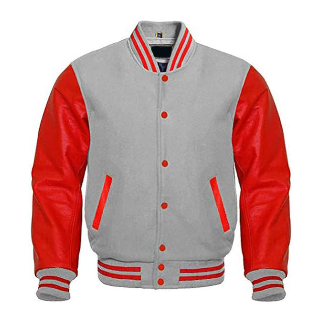 Unisex High Quality 100% Wool Varsity Jacket Custom Embroidery Stand Collar Leather Sleeves Windproof Eco-Friendly Breathable