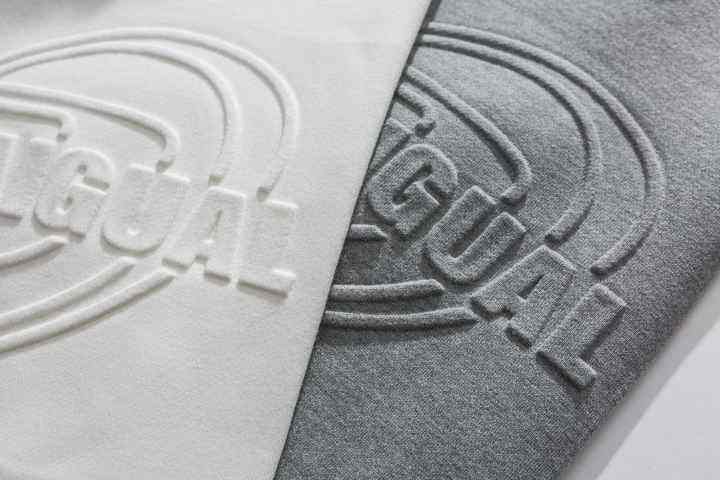 เสื้อกันหนาวสำหรับทุกเพศเสื้อคอกลม3D ปักโลโก้ป้องกันริ้วรอยป้องกันการหดตัวพิมพ์ลายปะต่อน้ำหนัก500กรัม