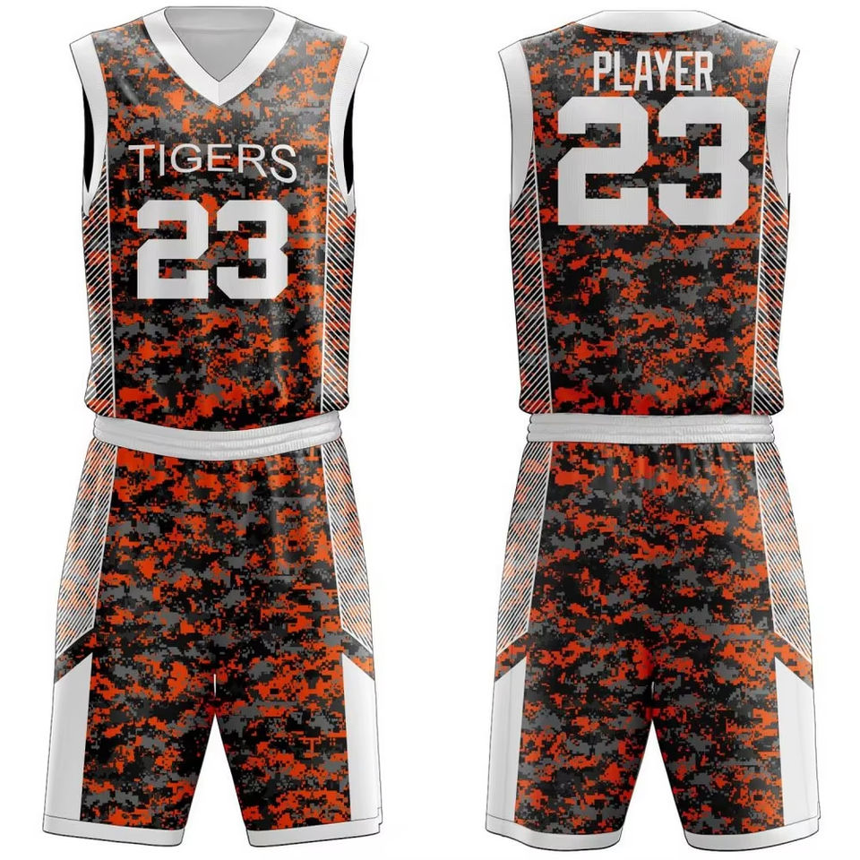 ชุดเครื่องแบบบาสเก็ตบอลแห้งเร็วแบบปรับแต่งได้สำหรับทุกเพศดีไซน์ซับลิเมตไซส์ใหญ่พิเศษ