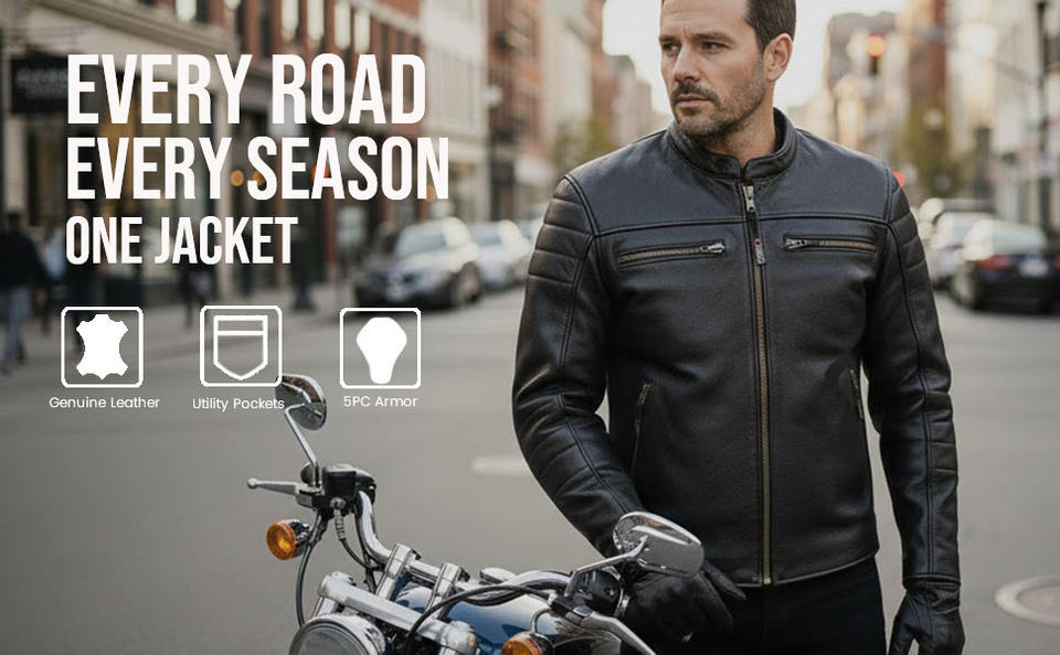 เสื้อแจ็คเก็ตมอเตอร์ไซค์คุณภาพสูงสำหรับทุกเพศ ทำจากหนังควายแท้ ระบายอากาศได้ดี เหมาะสำหรับรถครุยเซอร์และมอเตอร์ครอส ป้องกันได้ดี ปรับแต่งได้