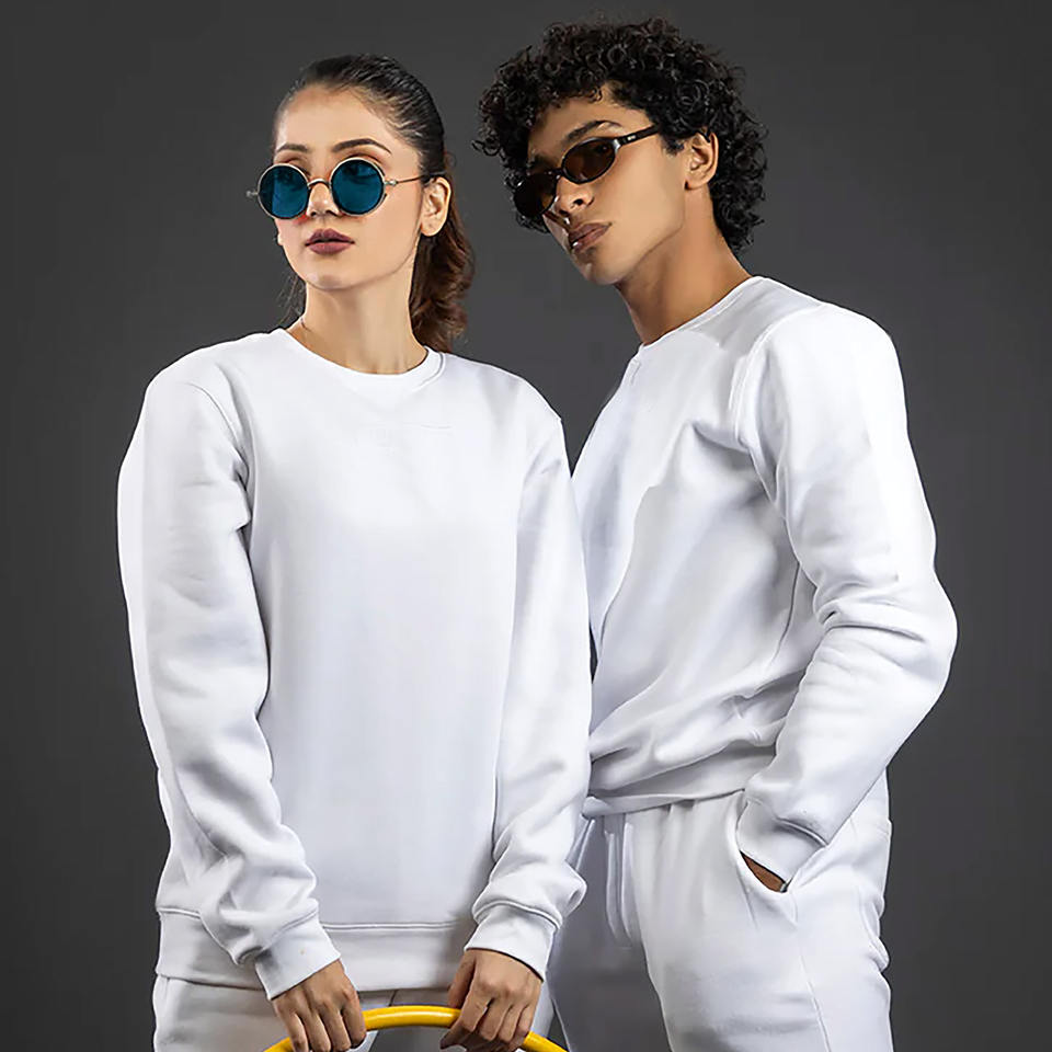 เสื้อสเวตเตอร์แบบสวมศีรษะ unisex สำหรับทุกเพศแขนยาวแบบแร็กแลนทรงหลวมใส่สบายมีซับในสีทึบ