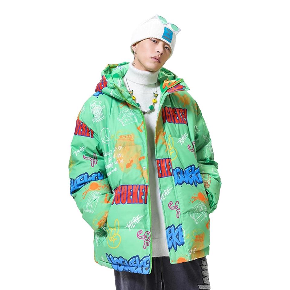 เสื้อแจ็คเก็ตพัฟเฟอร์มีฮู้ดพิมพ์ลายเต็มตัว สไตล์สตรีทแฟชั่น ยูนิเซ็กซ์ สำหรับฤดูหนาว รับสกรีนโลโก้ ซิป ไซส์พลัส ผลิตตามแบบ OEM เสื้อผ้าสตรีทแฟชั่นพิมพ์ลายเต็มตัว