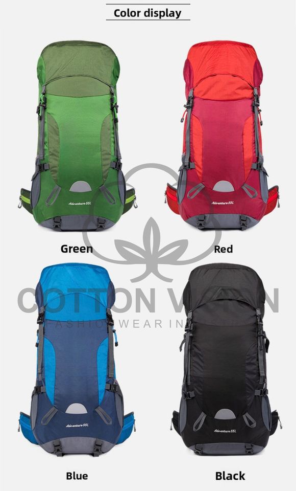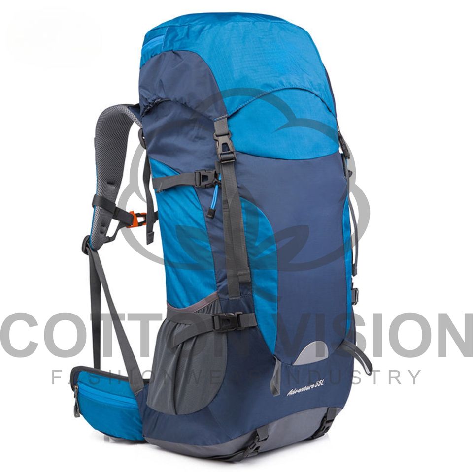 กระเป๋าเป้เดินป่าปีนเขาเดินทางแบบ unisex กันน้ำ 60 ลิตร ทำจากไนลอน