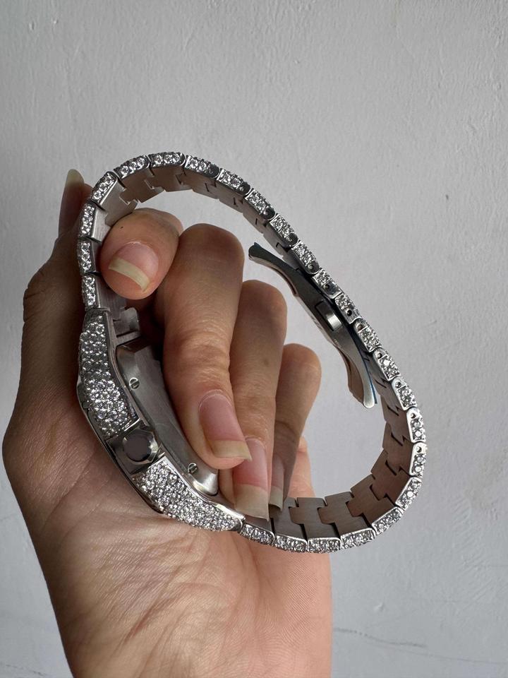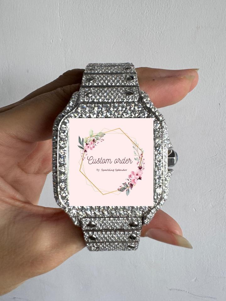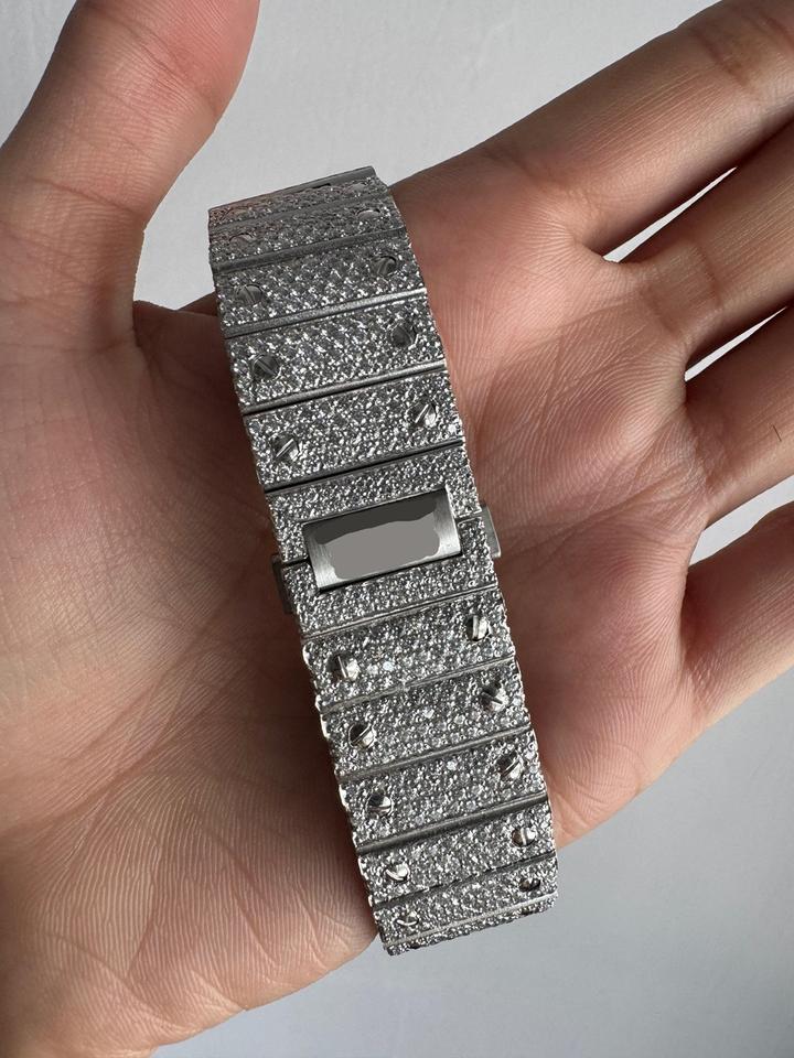 นาฬิกาข้อมือฮิปฮอปแบบยูนิเซ็กซ์ ประดับเพชรโมอิสซาไนต์เต็มหน้าปัด ตัวเรือนสี่เหลี่ยมจัตุรัส สายสแตนเลสสตีล หน้าปัดอะนาล็อก