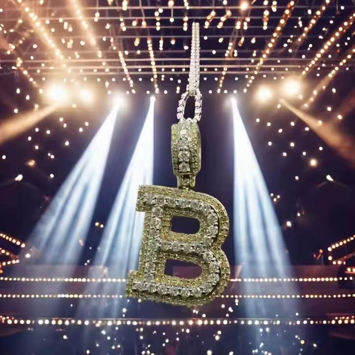 จี้ตัวอักษร B ชุบเงิน 925 สไตล์ฮิปฮอป ยูนิเซ็กซ์ ประดับโมอิสซาไนต์ ดีไซน์เก๋สำหรับงานปาร์ตี้ จาก HUMERA JEWELS
