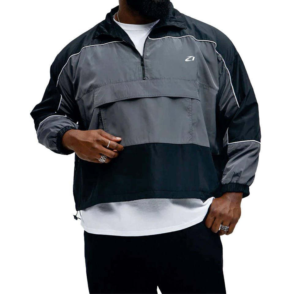 เสื้อแจ็คเก็ตวินด์เบรกเกอร์แบบมีฮู้ด ซิปหน้า ลายบล็อกสีสัน ตัดต่อแบบแพทช์เวิร์ค น้ำหนักเบา เหมาะสำหรับเล่นกีฬา กันน้ำ ระบายอากาศได้ดี รับผลิตแบบ OEM