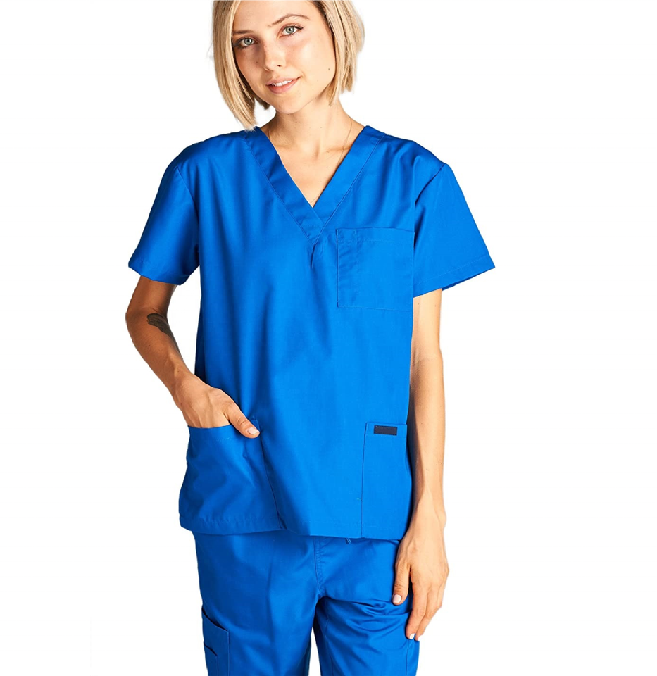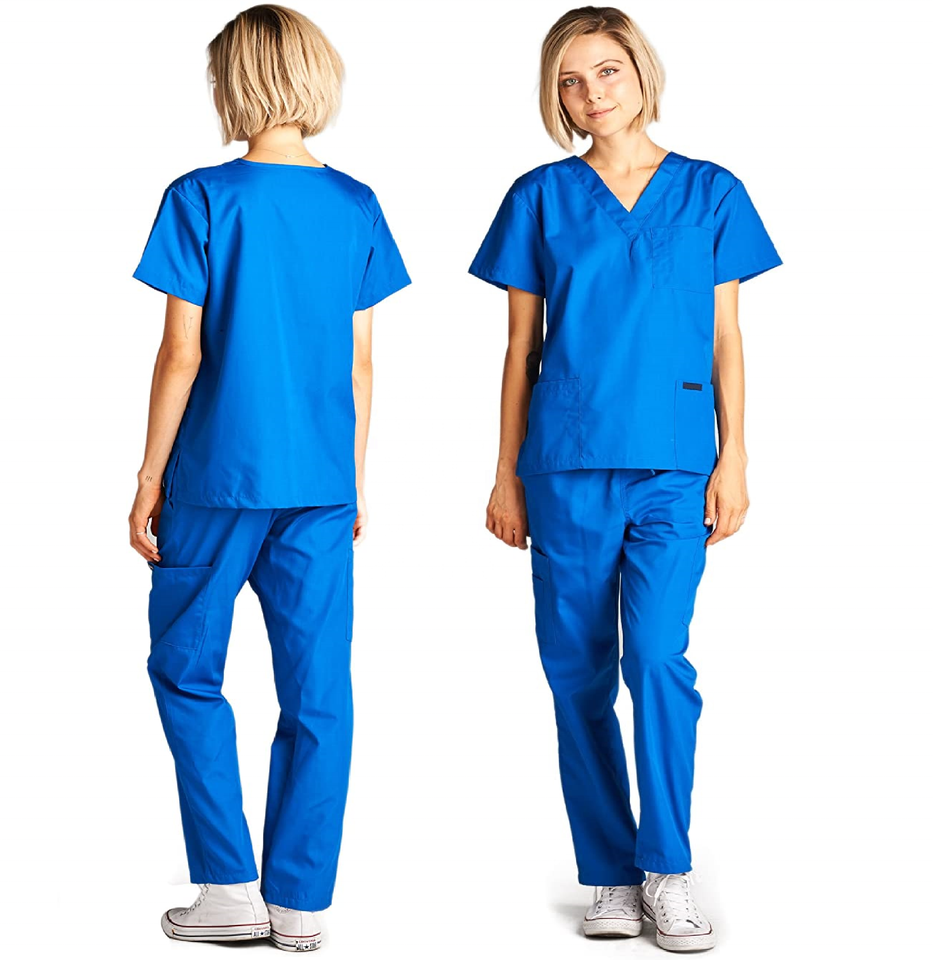 ชุดยูนิฟอร์มทางการแพทย์สำหรับผู้ชายและผู้หญิงชุดพยาบาลพิมพ์ลาย2ชิ้นเสื้อคอวีสำหรับใส่ได้ทั้งผู้หญิงและผู้ชาย