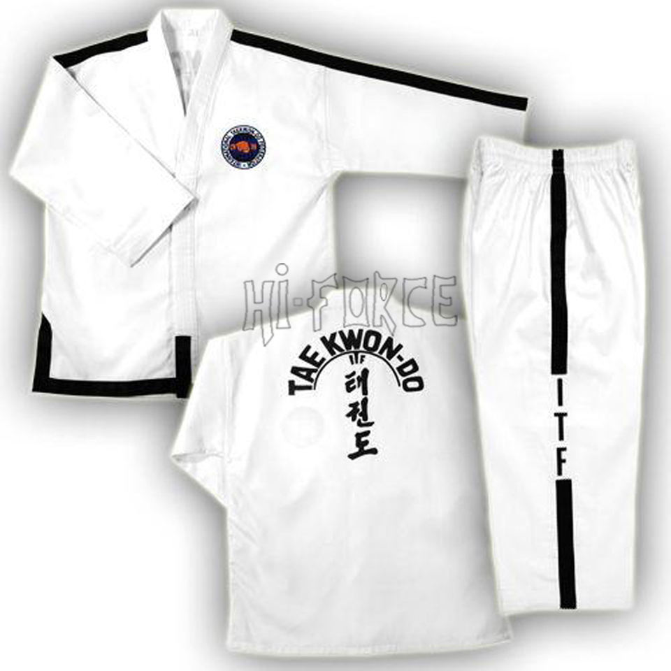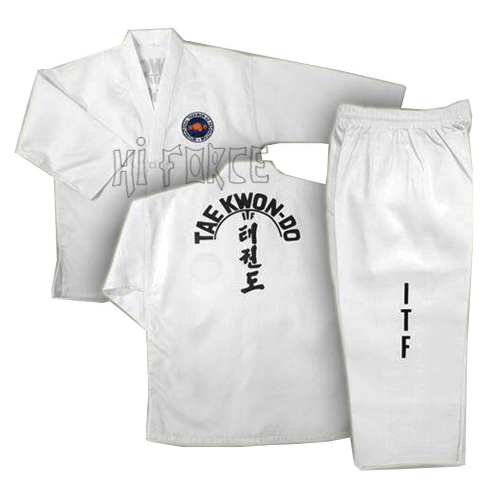 ชุดฝึกเทควันโดใช้ได้ทั้งชายและหญิงชุดฝึกศิลปะการต่อสู้ทำจากผ้าฝ้ายโพลีเอสเตอร์กำหนดโลโก้เอง