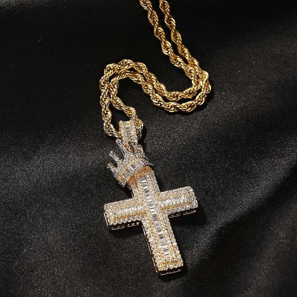 Unisex Iced Fine Pendant 925 Silver Custom Cross Baguette Design Diamond Moissanite Hip Hop Street Fashion Personalized Artist