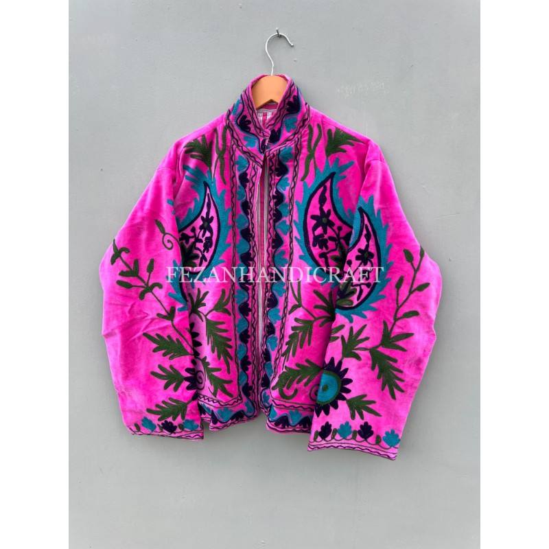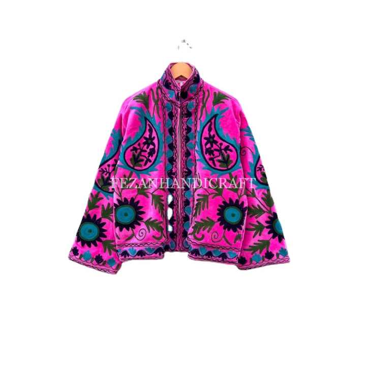 เสื้อแจ็กเก็ตกำมะหยี่สำหรับผู้หญิงอินเดียใส่ได้ทั้งชายและหญิงปักลายดอกไม้คอตั้งบุคอตตอนสำหรับงานเลี้ยงฤดูใบไม้ร่วงและฤดูหนาว