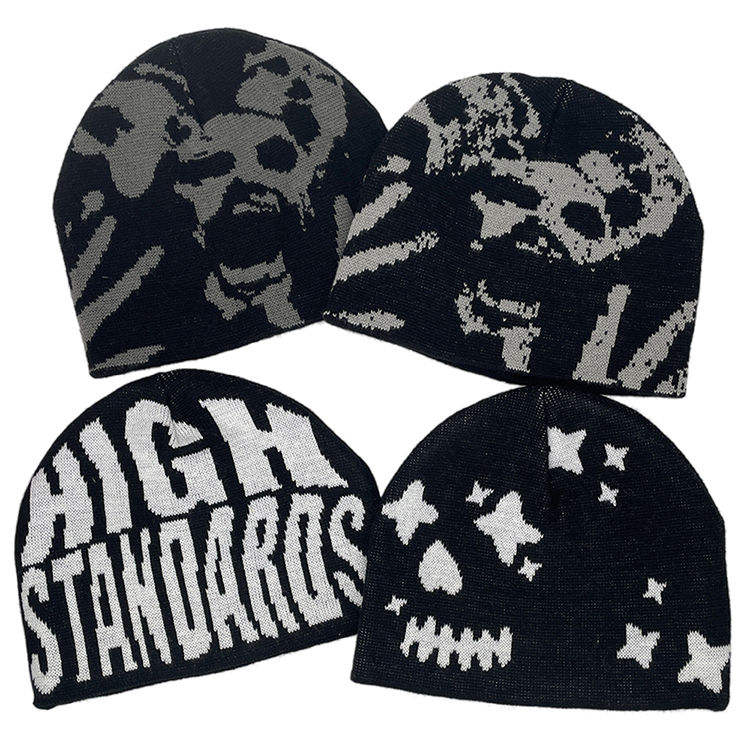 หมวกบีนนี่ผ้าแจ็คการ์ดใส่ได้ทั้งชายและหญิงหมวกบีนนี่ผ้าแจ็คการ์ดแบบถักโลโก้ได้ตามต้องการสำหรับฤดูหนาวหมวกผ้าฝ้าย100% ปักลายพิมพ์ดิจิตอล