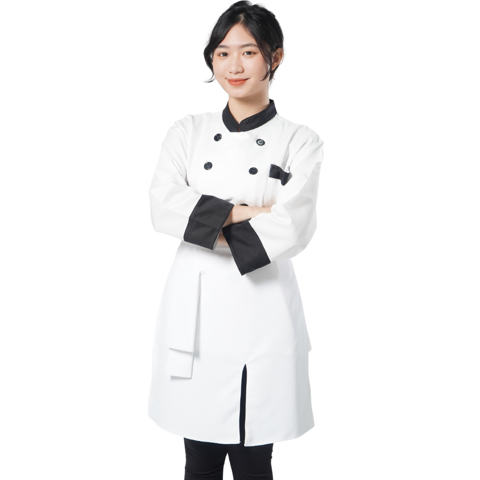 เสื้อเชฟครัวแบบยูนิเซ็กซ์พร้อมผ้ากันเปื้อน ชุดยูนิฟอร์มพนักงานร้านอาหาร จากผู้ผลิต