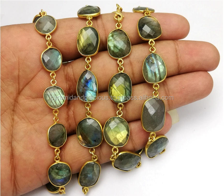 Name:Labradorite Gemstone Gold Plated Bezel Connector Chain