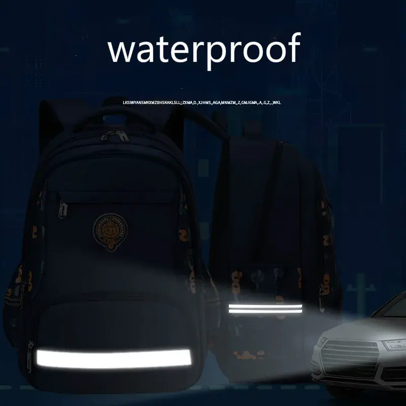 กระเป๋าเป้นักเรียนแฟชั่นลายการ์ตูนจุได้เยอะกันน้ำกันการฉีกขาดตาข่ายมีซิป