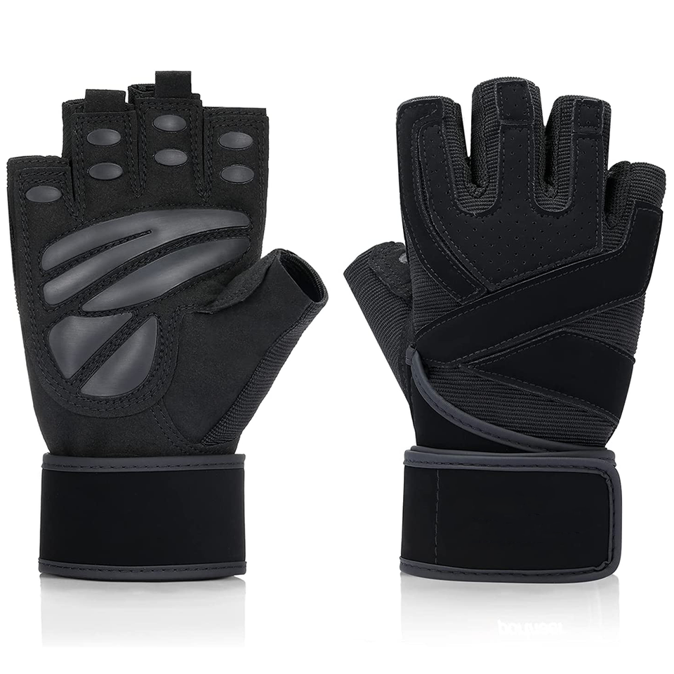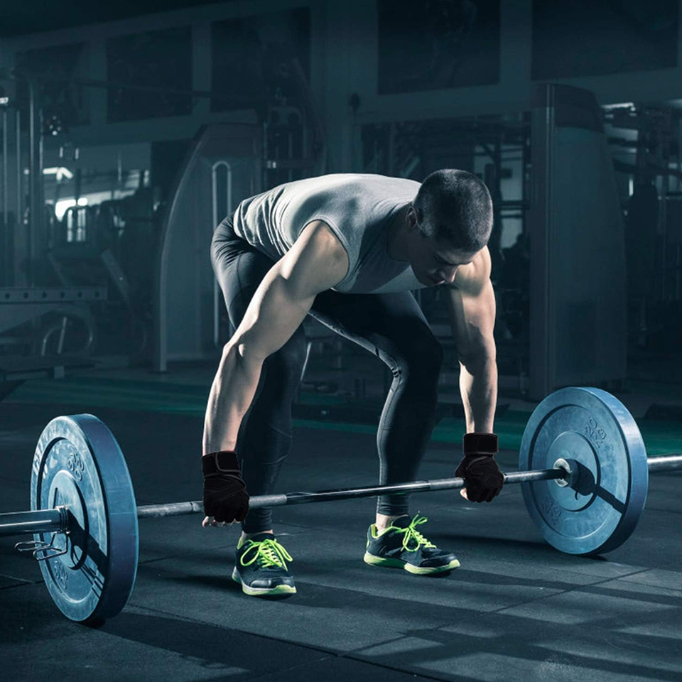 ถุงมือยกน้ำหนักหนังแบบยูนิเซ็กซ์ พร้อมสายรัดข้อมือปรับได้ และดีไซน์แบบครึ่งนิ้ว-ป้องกันการลื่นไถลที่ฝ่ามือ