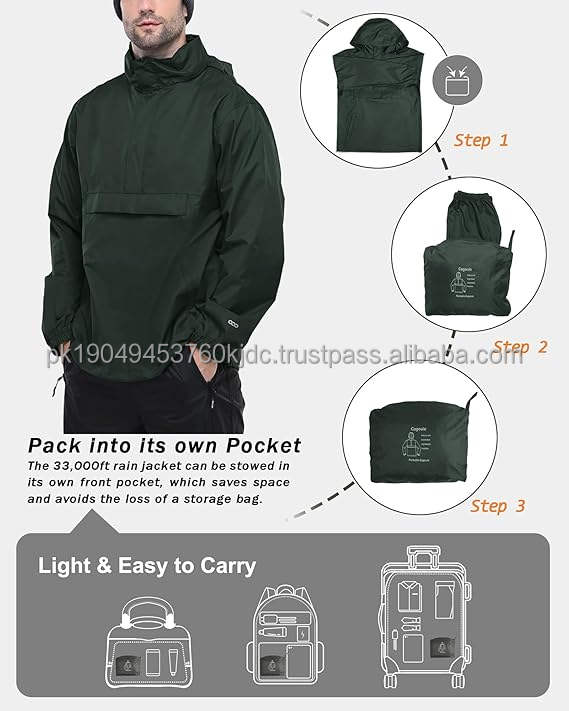 เสื้อแจ็คเก็ตกันลมแบบมีฮู้ด น้ำหนักเบา กันน้ำ เป็นมิตรกับสิ่งแวดล้อม ผลิตจากผ้า Oxford แบบ Unisex ซิปหน้า ระบายอากาศได้ดี ไซส์ใหญ่พิเศษ