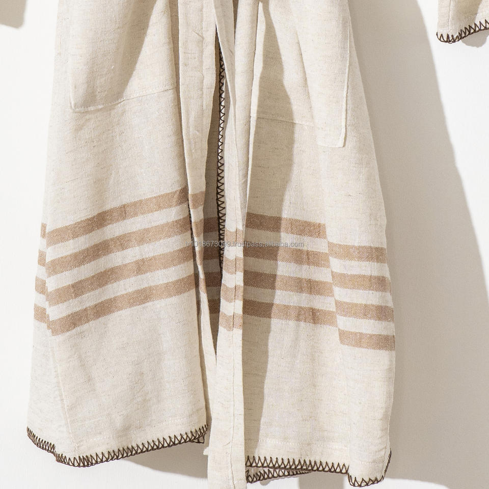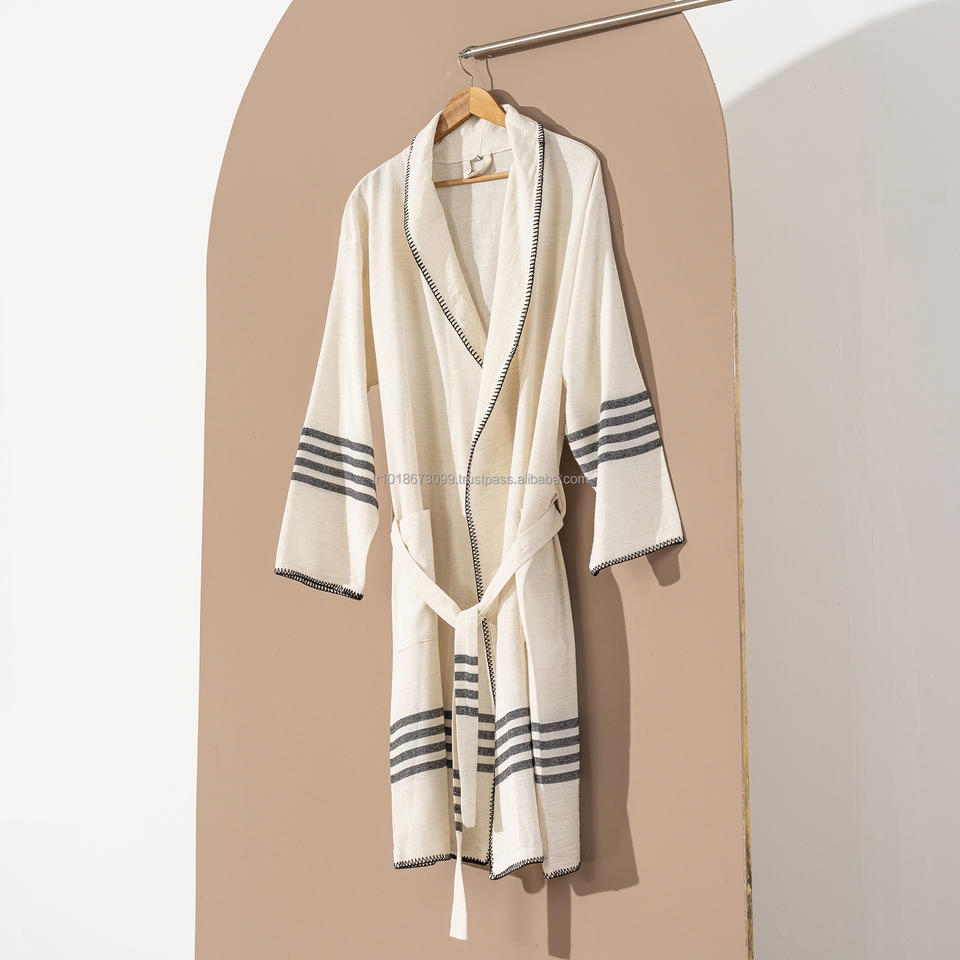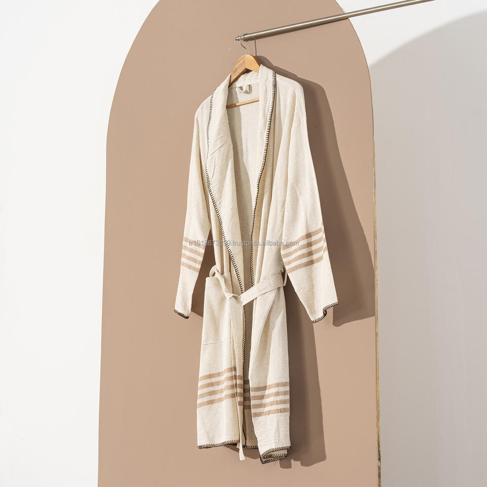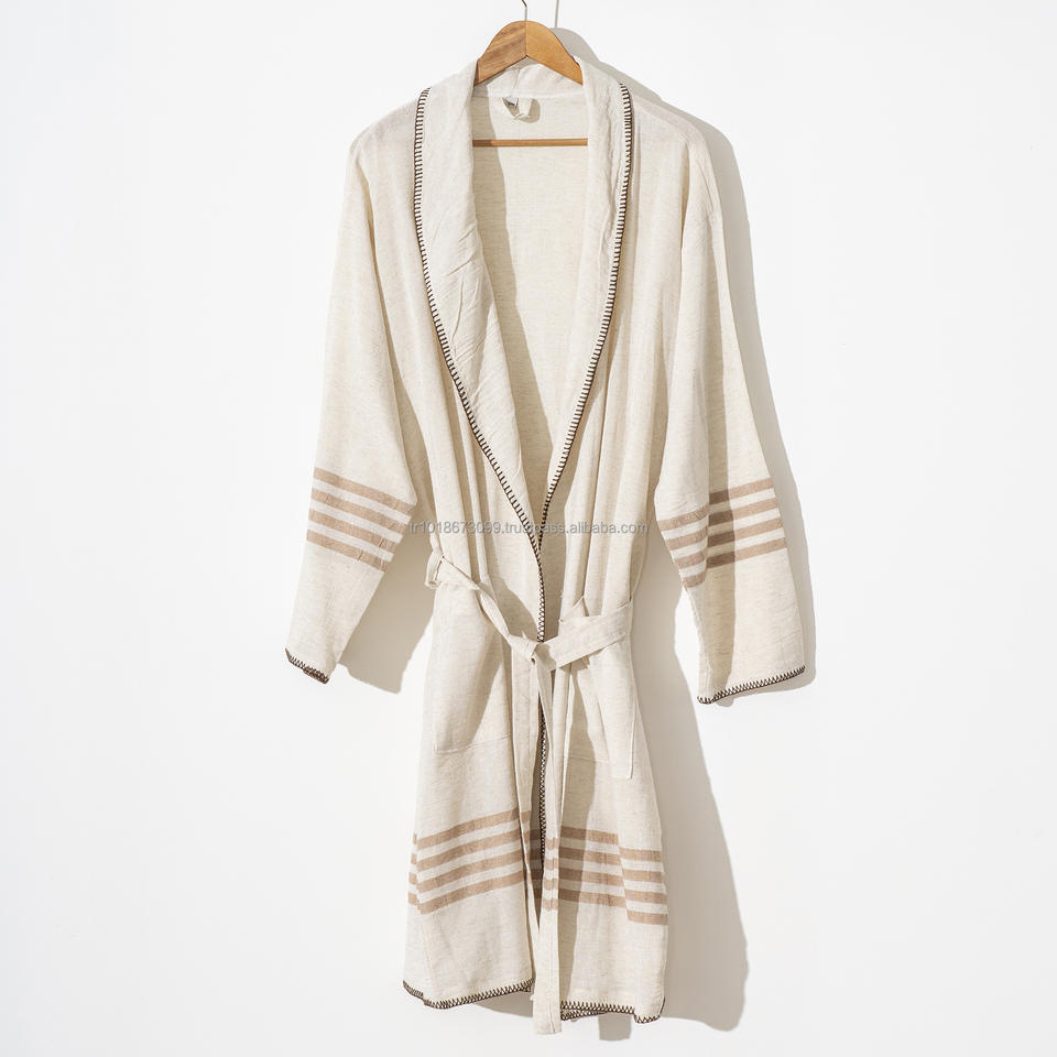 ชุดคลุมอาบน้ำทำจากผ้าลินินและไก่งวงระบายอากาศได้ดีน้ำหนักเบาชุดนอนสำหรับใส่ในเลานจ์ตลอดทั้งปีในฤดูร้อน