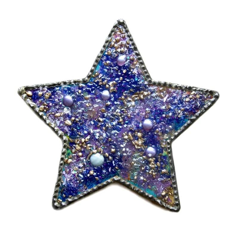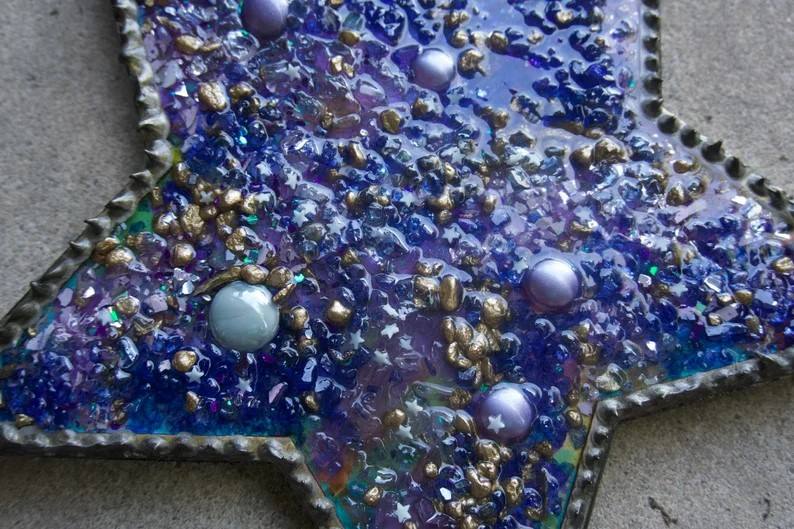 งานศิลปะผนังลายดาวเหลวสำหรับทุกเพศดีไซน์สื่อผสมที่มีเอกลักษณ์บนไม้พีชที่โดดเด่นสำหรับเครื่องประดับเสื้อผ้าศิลปะการต่อสู้