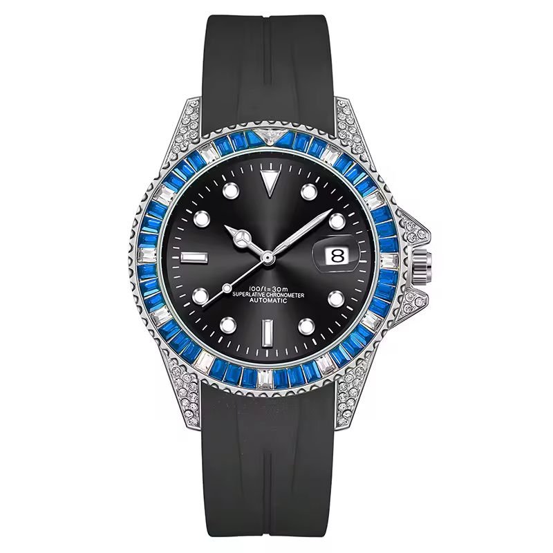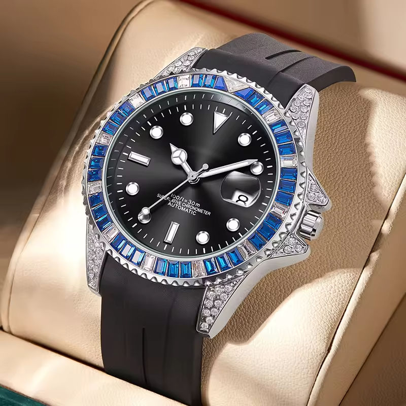 นาฬิกาข้อมืออัตโนมัติหรูหราสำหรับทุกเพศ สายสแตนเลสสตีลขนาด 20 มม. หน้าปัดคริสตัลแซฟไฟร์ ประดับเพชร กันน้ำ