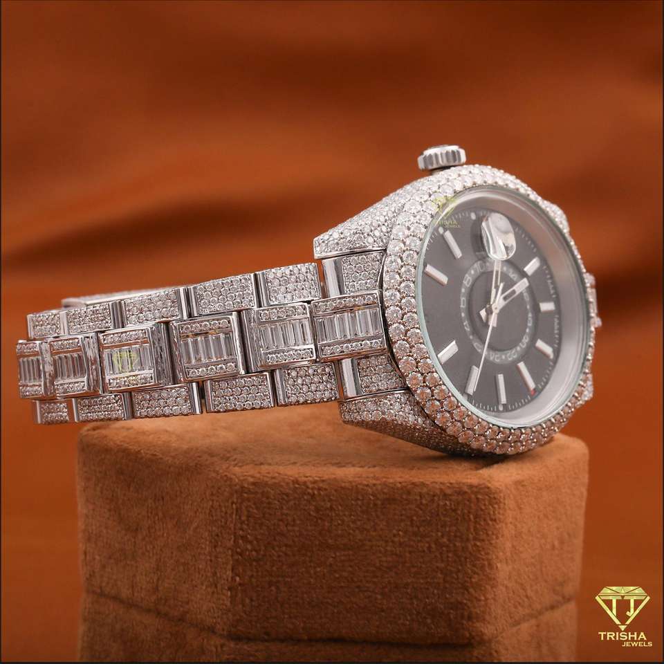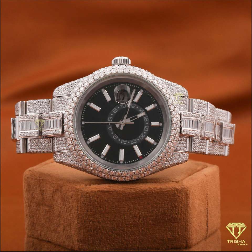 นาฬิกาข้อมือสุดหรูแบบปรับแต่งได้สำหรับทั้งชายและหญิงเพชรสีดำหน้าปัดหน้าอกดีไซน์สายสแตนเลส