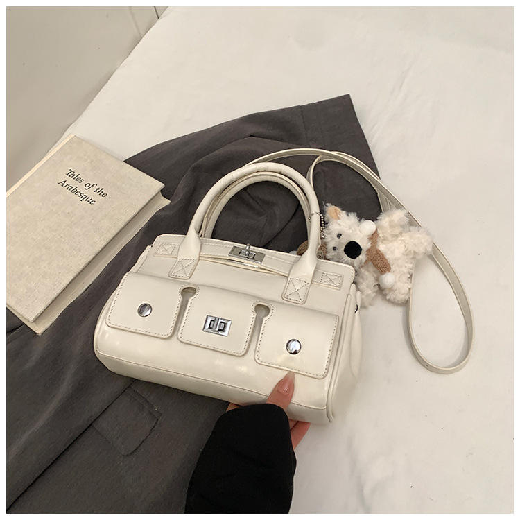 กระเป๋าถือสะพายข้างหนัง PU ลายเรขาคณิตสุดหรูสไตล์วินเทจสำหรับทุกเพศ