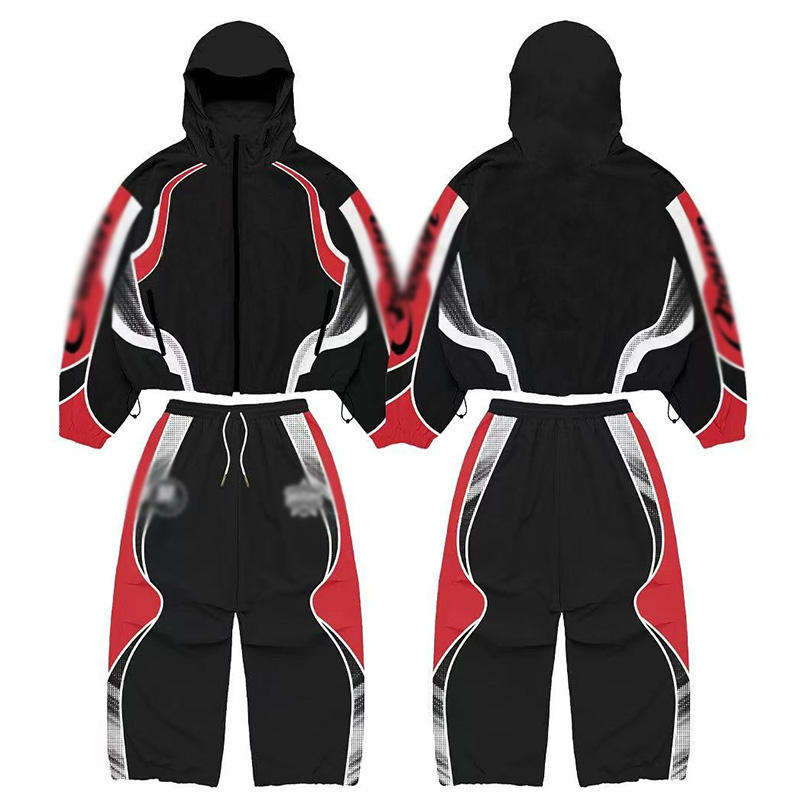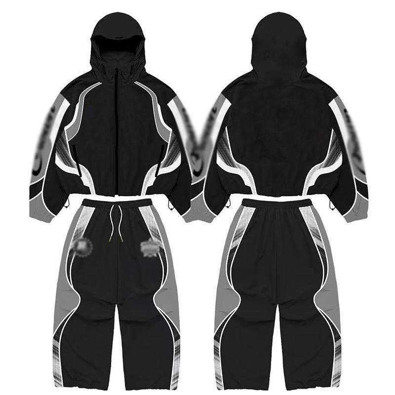 ชุดเซ็ตฮู้ดดี้แบบไร้รอยต่อ ผลิตตามสั่งสำหรับทุกเพศ ผลิตจากโพลีเอสเตอร์/คอตตอน ถักทอแบบ Colorblock แรงบันดาลใจจากชุดแข่งรถฤดูหนาว