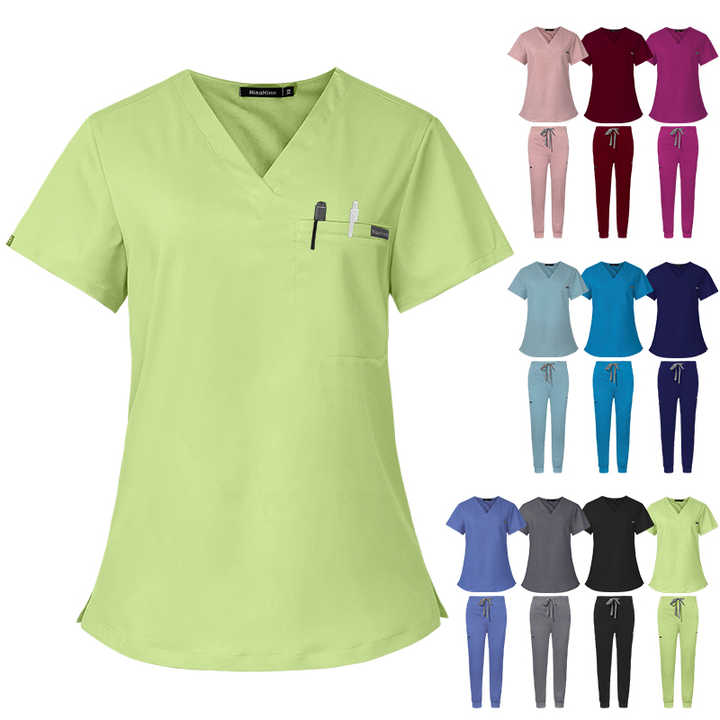 ชุดเครื่องแบบทางการแพทย์สำหรับทุกเพศกางเกงจ็อกเกอร์ใส่สบายสำหรับผู้ชายและผู้หญิงแพทย์และพยาบาลเสื้อคอวีแขนสั้นชุดทำงาน