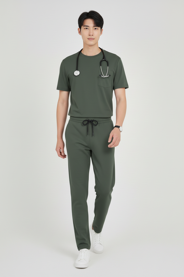 ชุดยูนิฟอร์มแพทย์แบบ unisex เสื้อแขนสั้น กางเกงจ็อกเกอร์ ผ้าสแปนเด็กซ์/คอตตอน ระบายความชื้น เหมาะสำหรับงานด้านสุขภาพและโรงพยาบาล