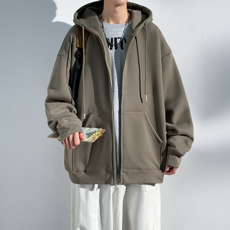 เสื้อแจ็กเก็ตมีฮู้ดรุ่นเฮฟวีเวตใส่ได้ทั้งชายและหญิงเสื้อแจ็กเก็ตแนวสตรีทอเมริกันสำหรับคู่รักคอตั้งดีไซน์ซับในแฟชั่นทรงหลวมใส่ฤดูใบไม้ผลิ/ฤดูใบไม้ร่วง