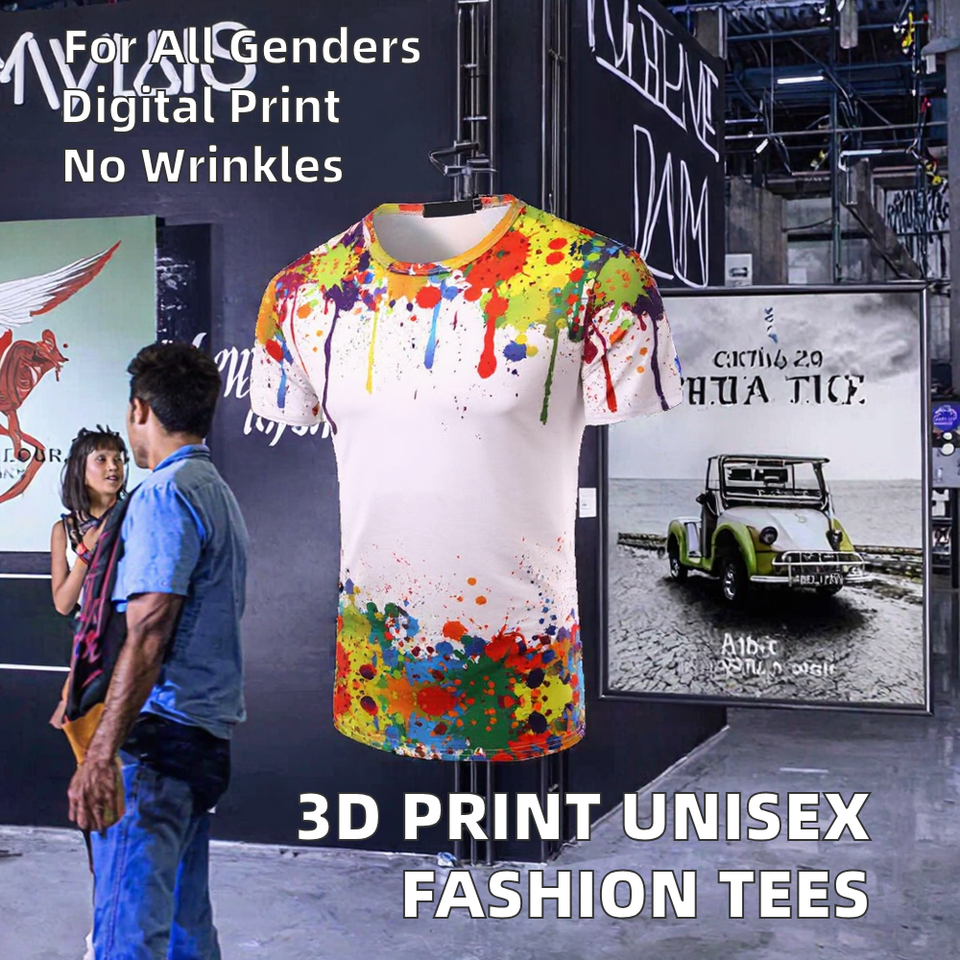 เสื้อยืดแฟชั่นลายกราฟิก 3 มิติ สำหรับผู้ชายและผู้หญิง แบบลำลอง ลายพื้น ผ้าทวิล พิมพ์ดิจิทัล สำหรับผู้ใหญ่และวัยรุ่น