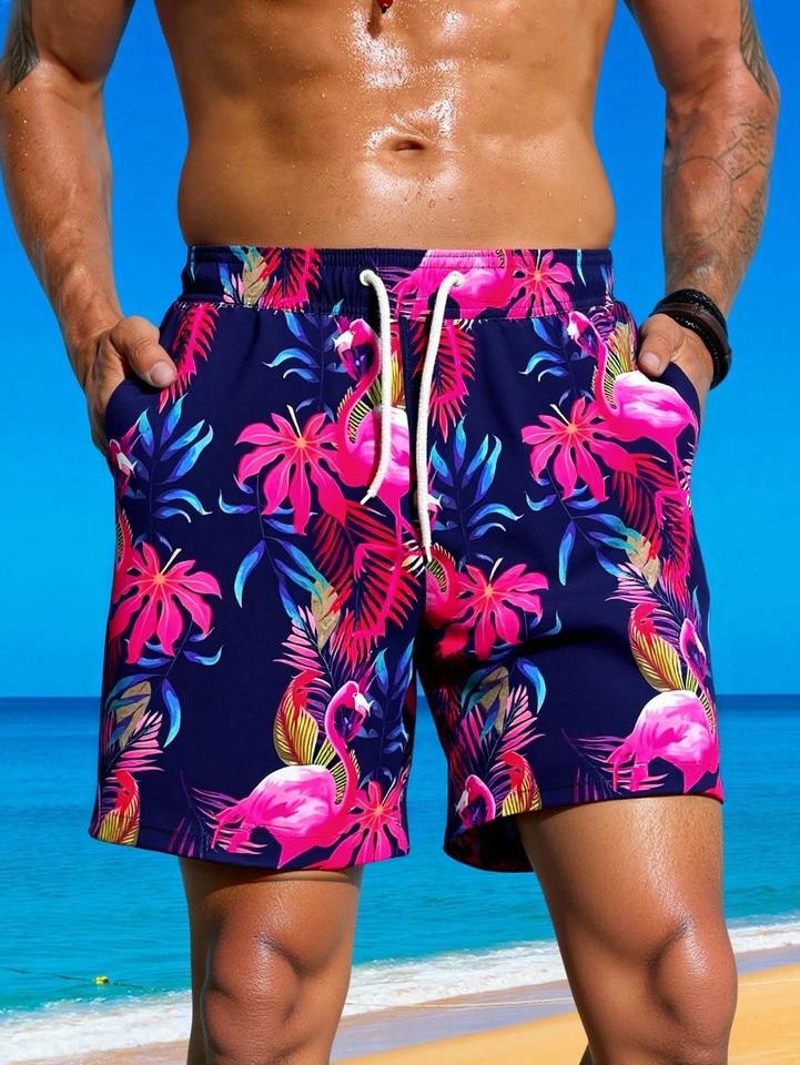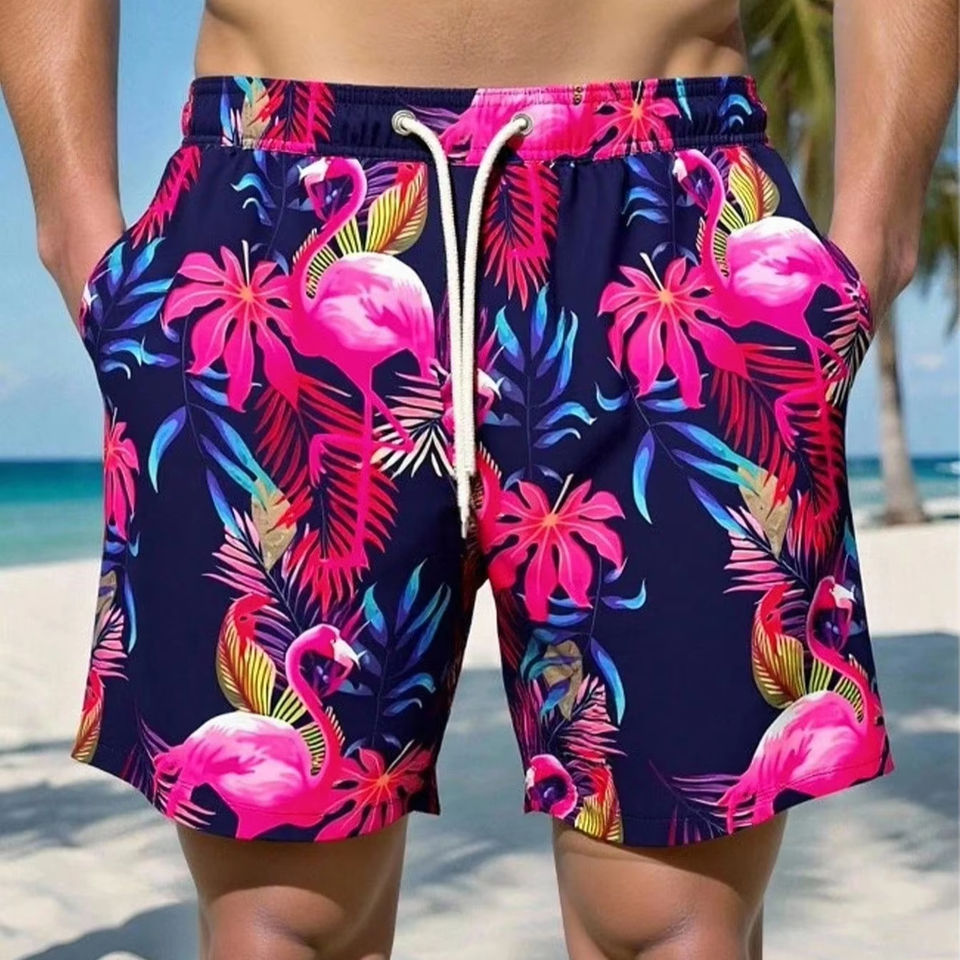กางเกงว่ายน้ำชายแบบ unisex แห้งเร็ว ลายดอกไม้ ชุดชายหาด น้ำหนักเบา ระบายอากาศได้ดี กันน้ำ กางเกงขาสั้นฤดูร้อนแบบทอ