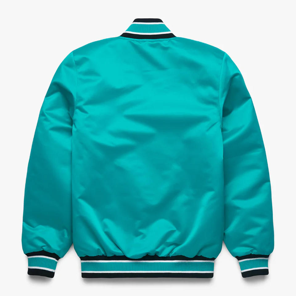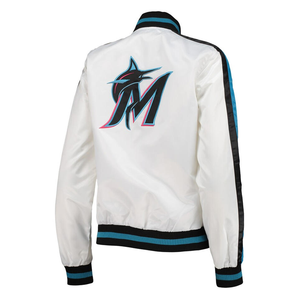 แจ็กเก็ตบอมเบอร์แจ็กเก็ตผ้าซาตินตัวเดียวสำหรับทั้งชายและหญิงไมอามี่สีขาวบ้านเกิดแบบอเมริกันวินเทจเป็นมิตรกับสิ่งแวดล้อม