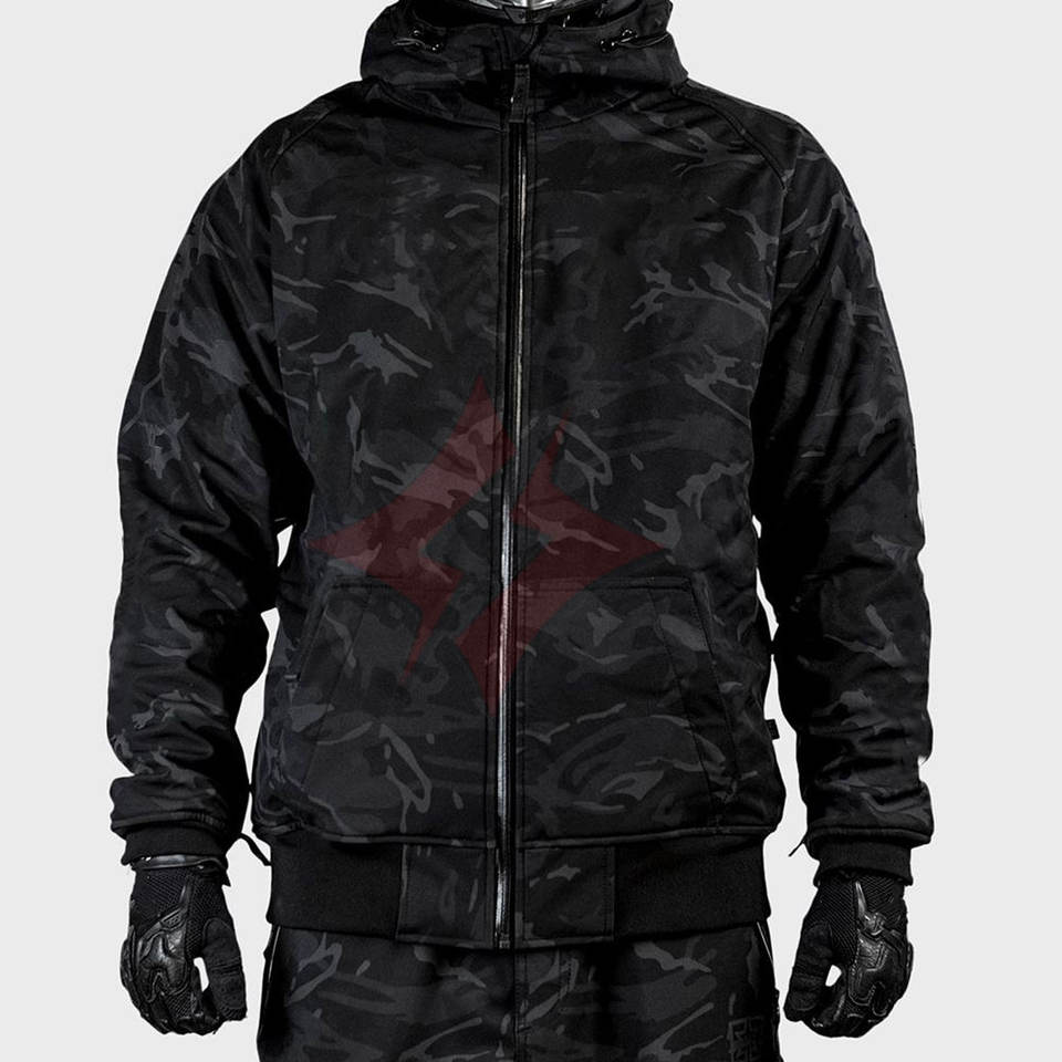 เสื้อฮู้ดมอเตอร์ไซค์แบบยูนิเซ็กซ์ ผ่านการรับรองมาตรฐาน CE พร้อมแผ่นป้องกัน ระบายอากาศได้ดี บุขนแกะ สีดำ ซับในเต็มตัว ผลิตจากโพลีเอสเตอร์ 100%