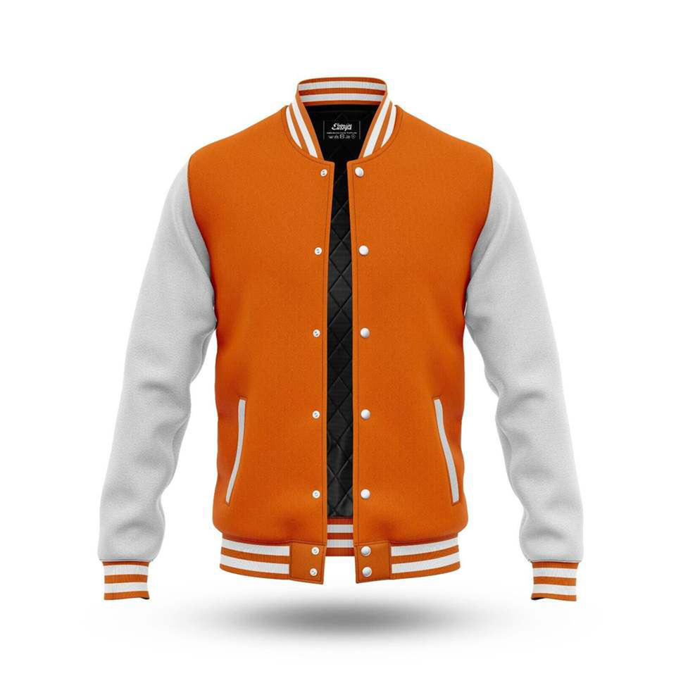 แจ็คเก็ตสไตล์วาร์ซิตี้หลากสีแบบยูนิเซ็กซ์ แขนเสื้อสีขาวตัดกัน ซับในแบบควิลท์ แต่งขอบลายริบ กระดุมแป๊ก สไตล์ลำลองในเมือง