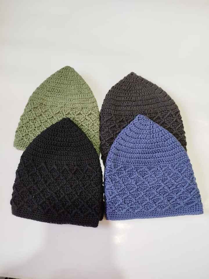 หมวกคลุมผมสำหรับละหมาดแบบยูนิเซ็กซ์สำหรับผู้ชาย งานแฮนด์เมดถักนิตติ้งจากผ้าฝ้าย 100% ปรับขนาดได้ อุ่นสบายทุกฤดู ผลิตในบังกลาเทศ