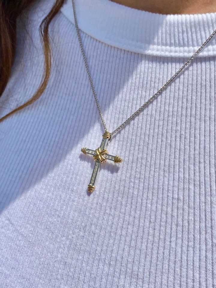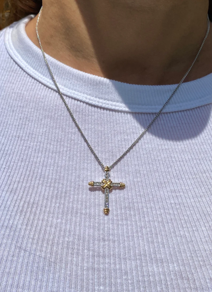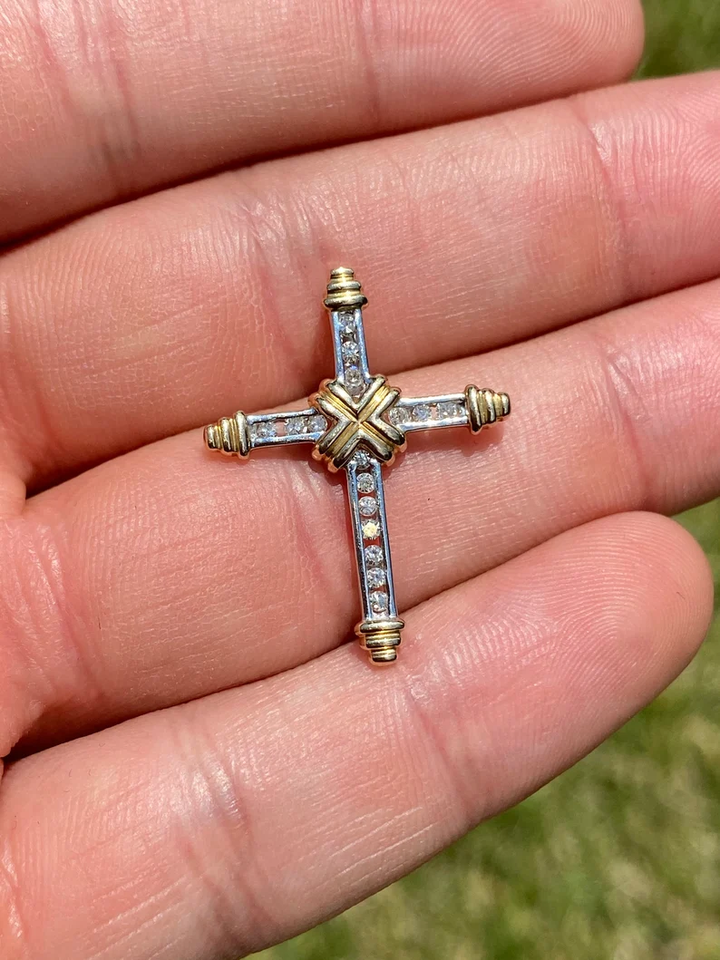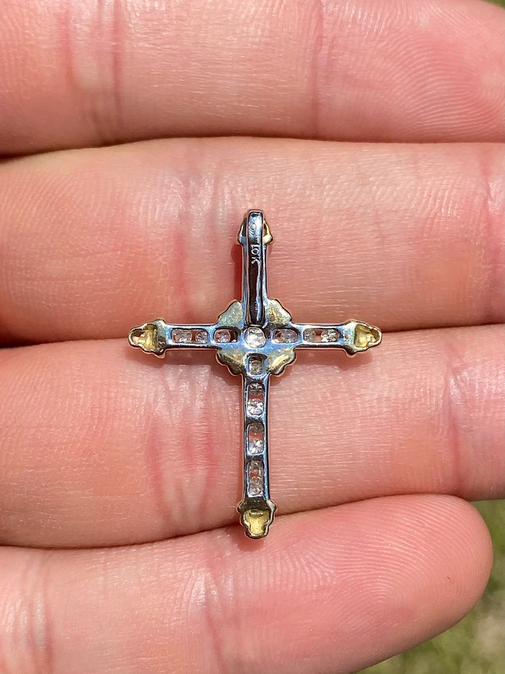จี้ไม้กางเขนเพชรธรรมชาติสำหรับทุกเพศแข็ง10K สีเหลืองชุบทอง18K ชุบทองอัญมณีคริสเตียนเครื่องประดับแฟชั่น