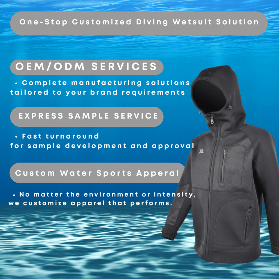 ผู้ผลิตเสื้อแจ็คเก็ตแบบมีฮู้ดนีโอพรีนสำหรับทุกเพศ ชุดดำน้ำพิมพ์ลายซิลค์สกรีนสำหรับอุปกรณ์ดำน้ำและเล่นเซิร์ฟ
