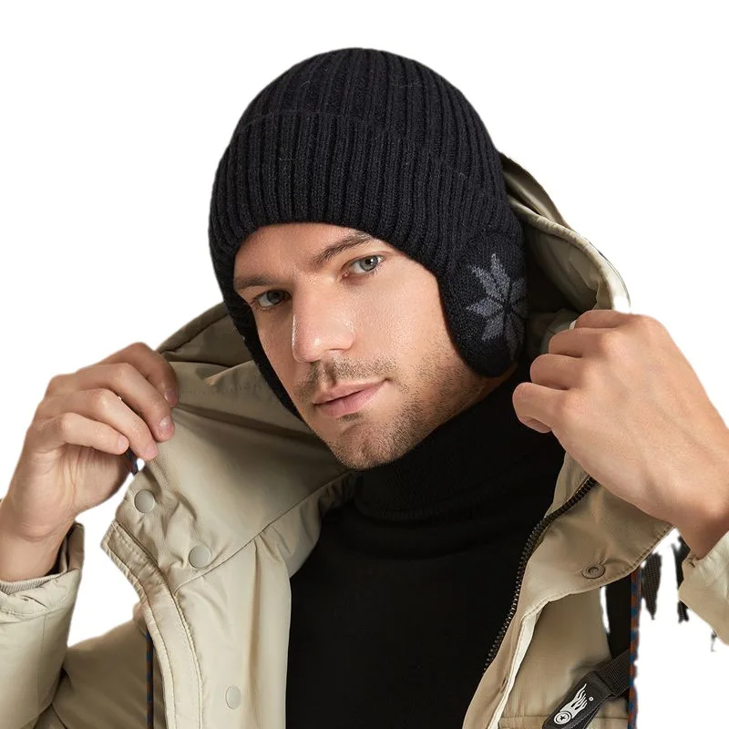 Unisex New Winter Knitted Hat with Fur Lining and Earflap Fashion Beanie Cap for Men Women Classic Outdoor Keep Warm Accessory